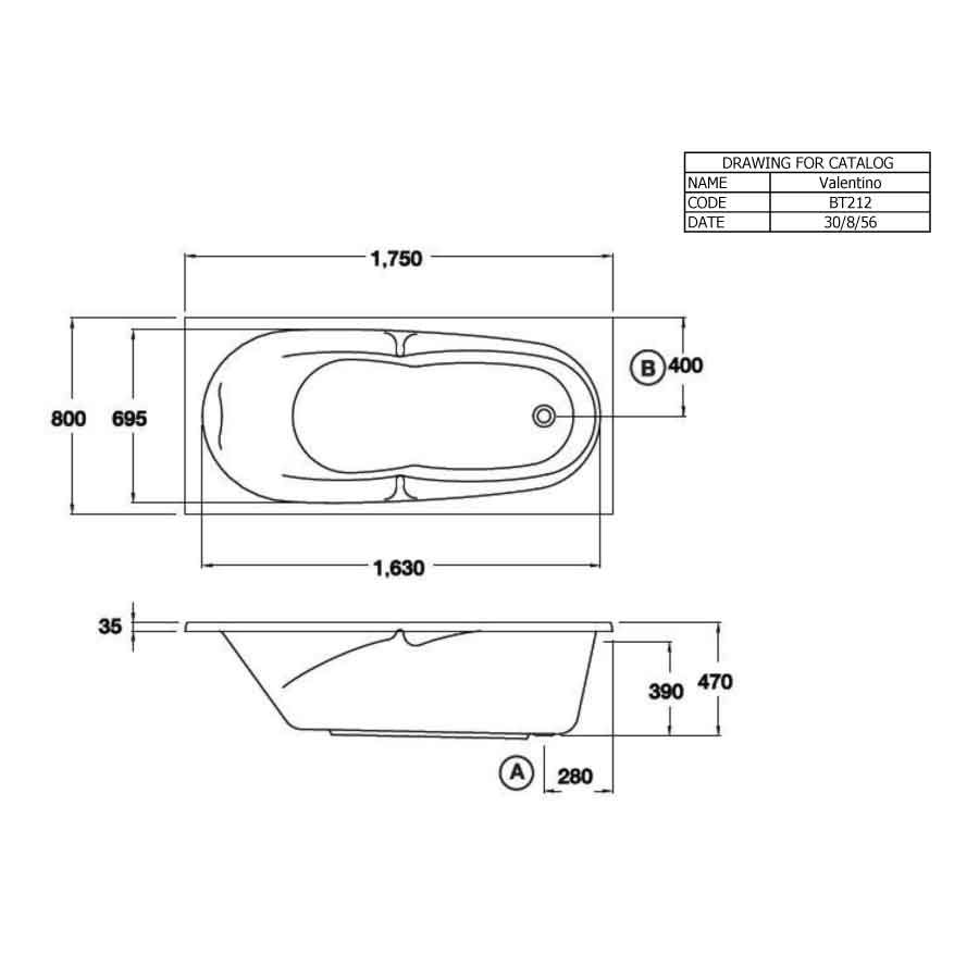 Bản vẽ kỹ thuật bồn tắm COTTO BT212PP(H) xây bệ không tay vịn
